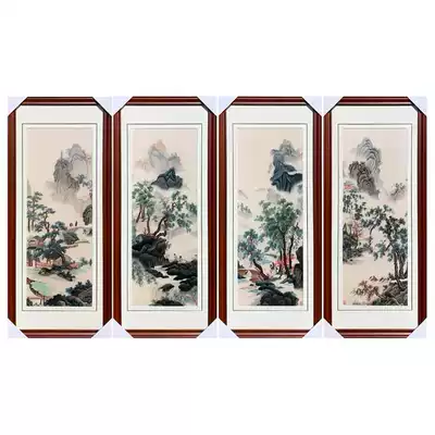 Soochow hand embroidered living room four screens Tang Yin landscape Su embroidery finished new Chinese style high-end villa town house hanging painting