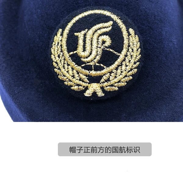Genuine Air China stewardess flight attendant hat Red Blue with cap badge Airlines wool China International Airlines
