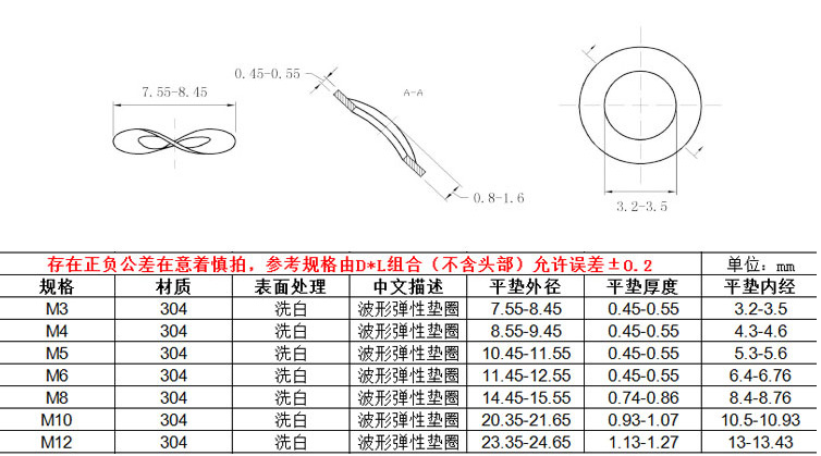 304 stainless steel DIN137A saddle elastic gasket DIN137B wavewave anti-slip flat pad M2M3M4M18