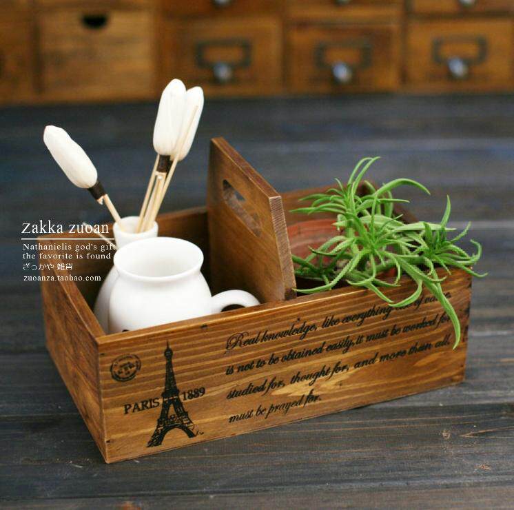 ZAKKA Yijiaju two-grid handle storage box retro old solid wood nostalgic desktop storage basket