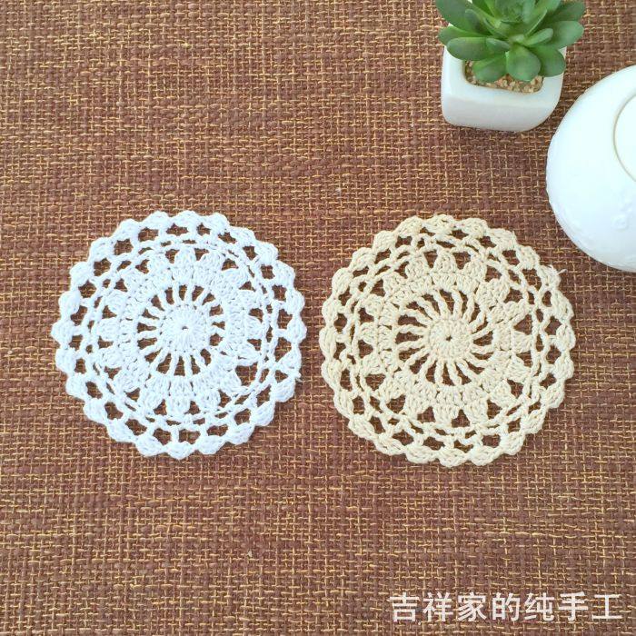 Mascot Handcrafted Crochet Cup Cushion Z Tie Wind Retro Sen Ensemble Bauhinia Flower core prop pure cotton sheet 10-12CM