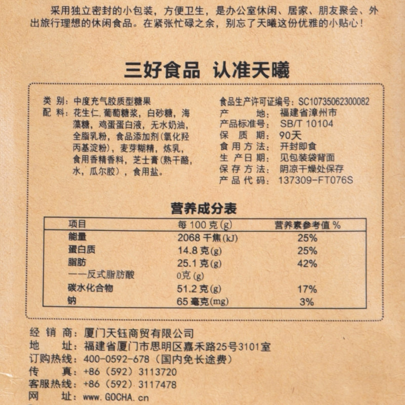 Tianfu tea handmade peanut nougat green tea nougat Xiamen specialty 200×3 bags