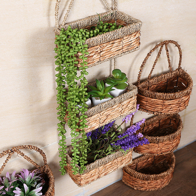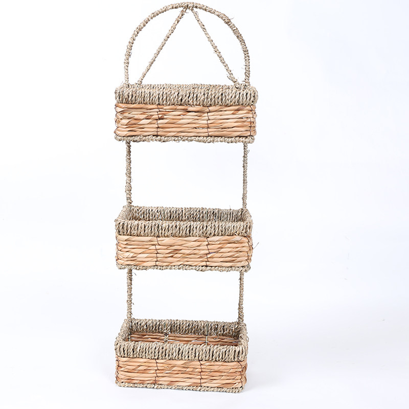 Natural straw woven wall hanging storage bag rack Multi-layer hanging storage basket Door storage hanging basket wall hanging storage basket