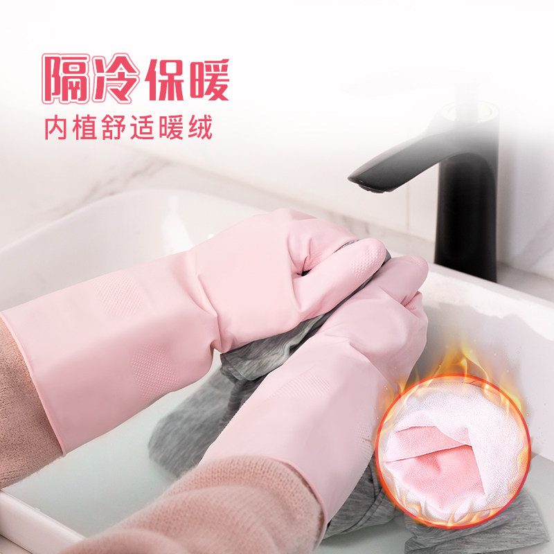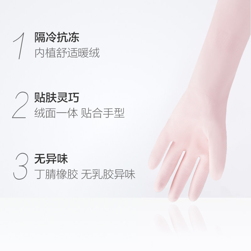 Wonderful Clean Odorless Warm Fleece Extra Long Household Gloves Kitchen Dishwashing Nitrile Waterproof Antifreeze Wash Clothes Thick