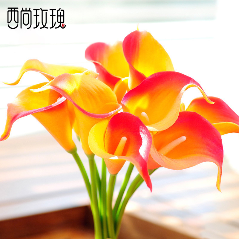 Simulation flower 9 heads PU hand calla lily living room table surface tea table vase flower arrangement flower decoration decoration
