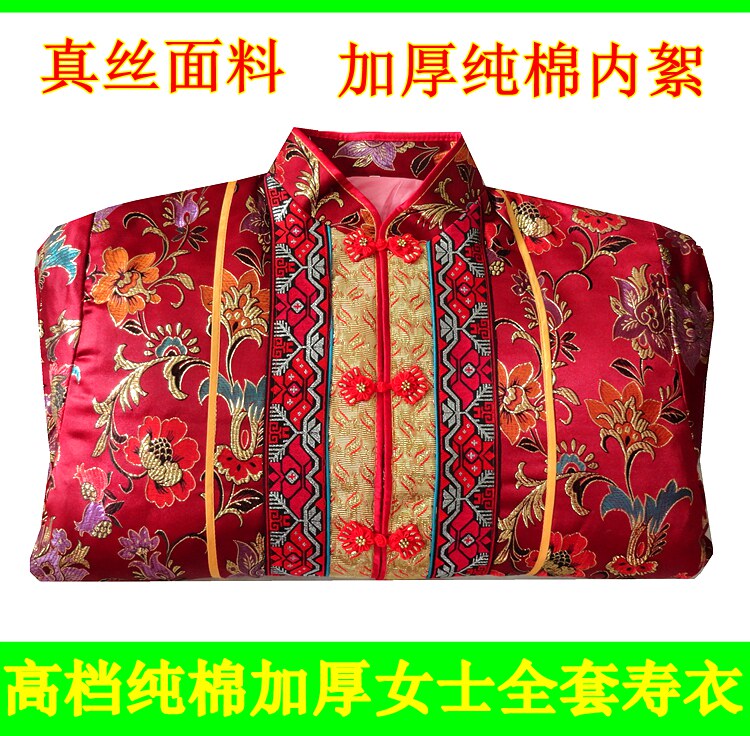Fine silk pure cotton thickened Tang suit shroud Funeral supplies old shroud men and women a full set of solid wood urns