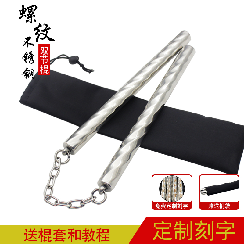 I Xiang threaded double-section stick performance stick practice Double-cut stick Talking stainless steel practice Two-section stick performance Exercise stick