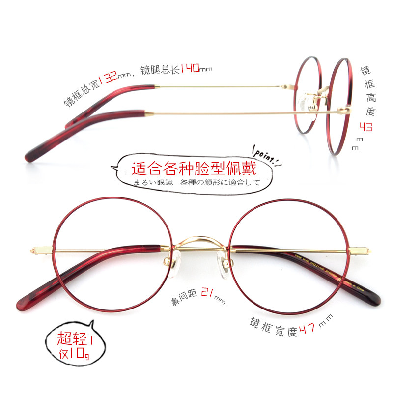 Miba gold wire glasses men's round frame decoration can be matched with myopia glasses women's finished products trendy simple ultra-light small face flat mirror