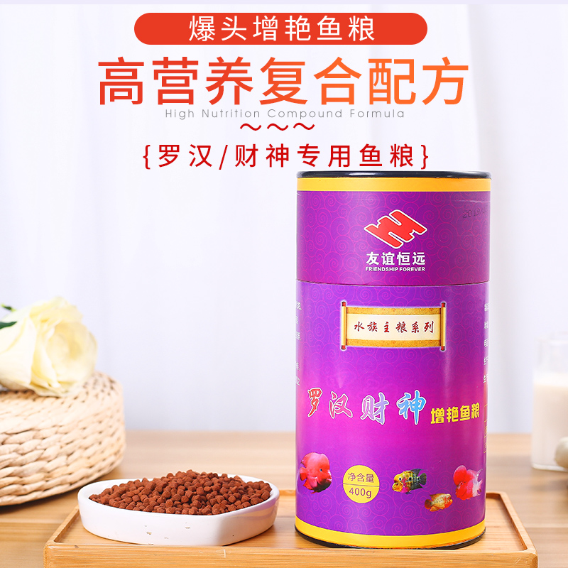 Flower Arhat special fish food headshot Longevity star head fish food God of wealth fish feed Head brightening fish food Ornamental fish food