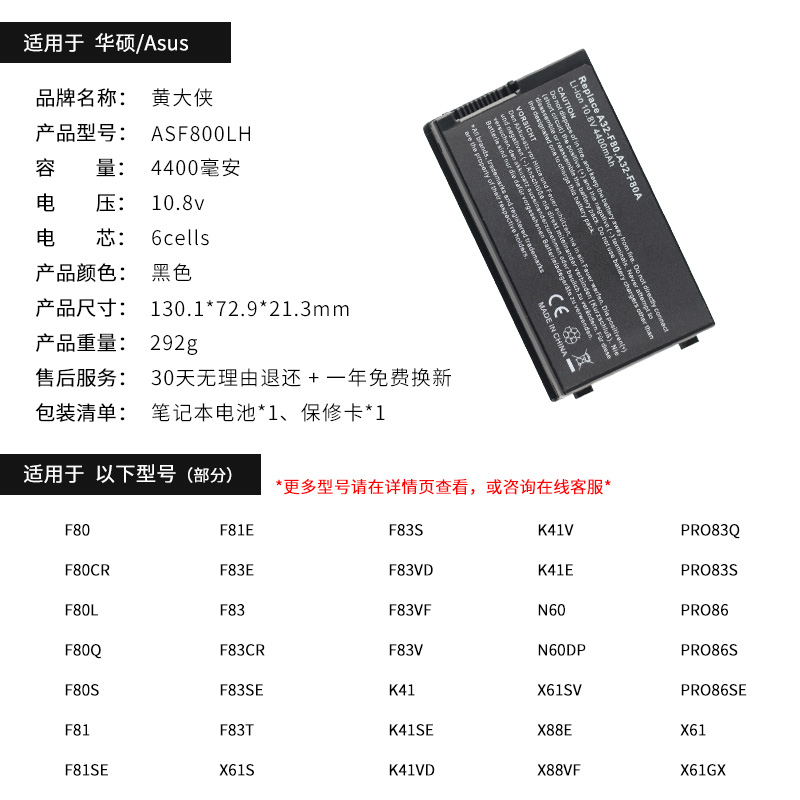 ASUS F81S Battery F81 X85s K41V A32-F80 F88V f88V f83 x88s F83SE Pen