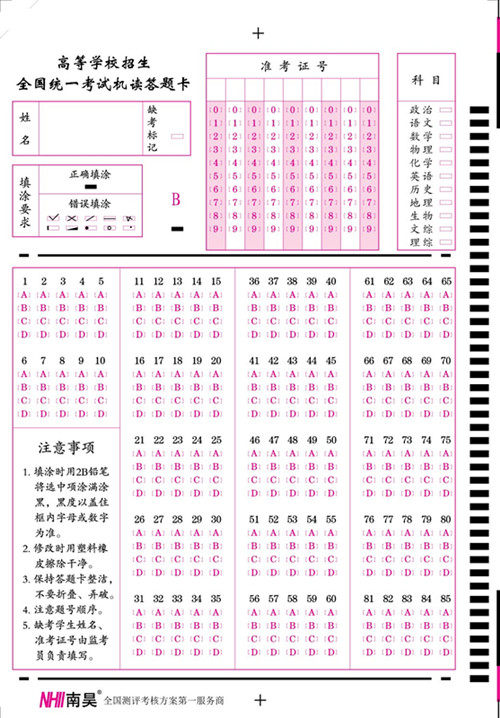 Nanhao 85 question B card national unified school college entrance examination answer card paper machine reading card paper 10000 sheets