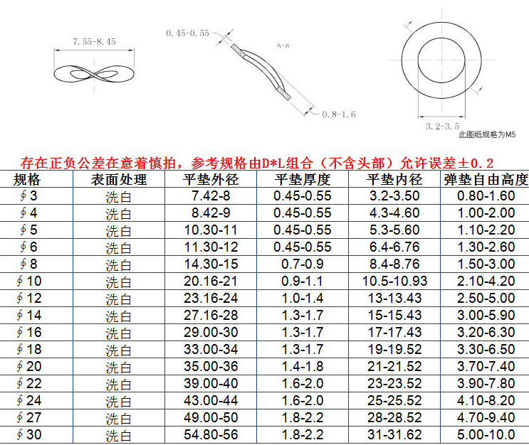 304 stainless steel GB955 wave elastic washer M3M4M5M6M8M10M24 anti-skid A4 anti-fall flat pad 316