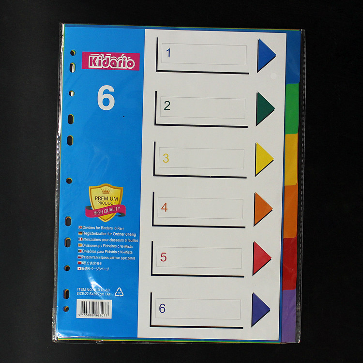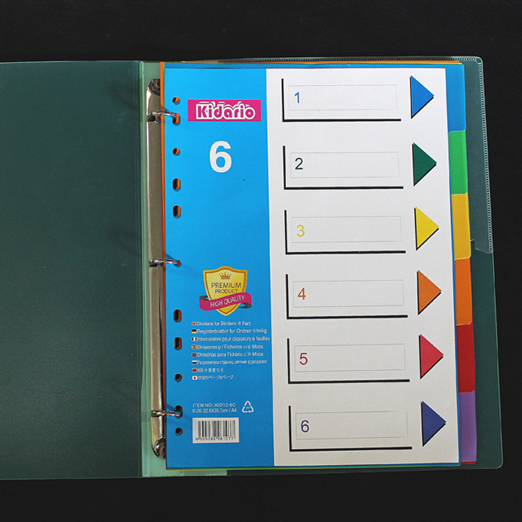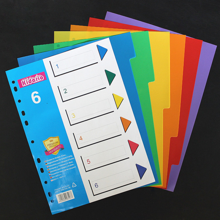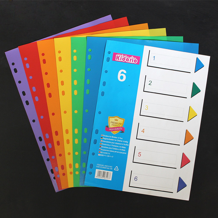 A4 Loose-leaf Index Paper Sorting Paper 6 Pages Color Paginated Paper PP Plastic Sepp Sheet paper Classification Page 11-hole English version