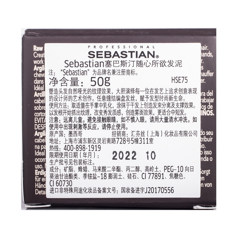Sebastian Sebastian Free Hair Clay Strong styling Natural Matte styling Back Hair Wax