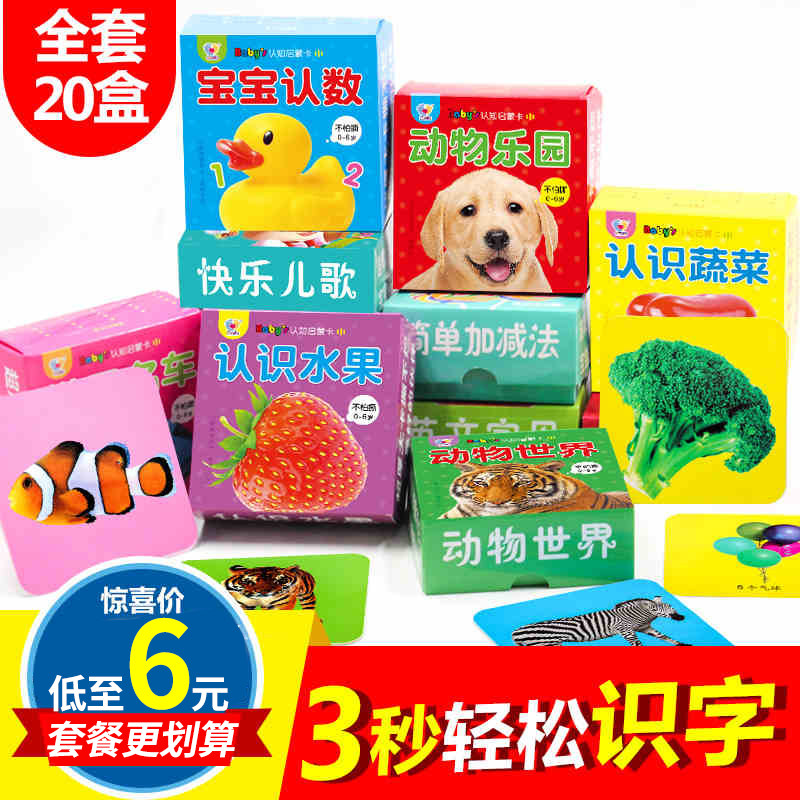 Children's literacy card 3000 words pinyin big card digital card 3-year-old 2 baby tear can not rot early education card Look at the picture to recognize objects