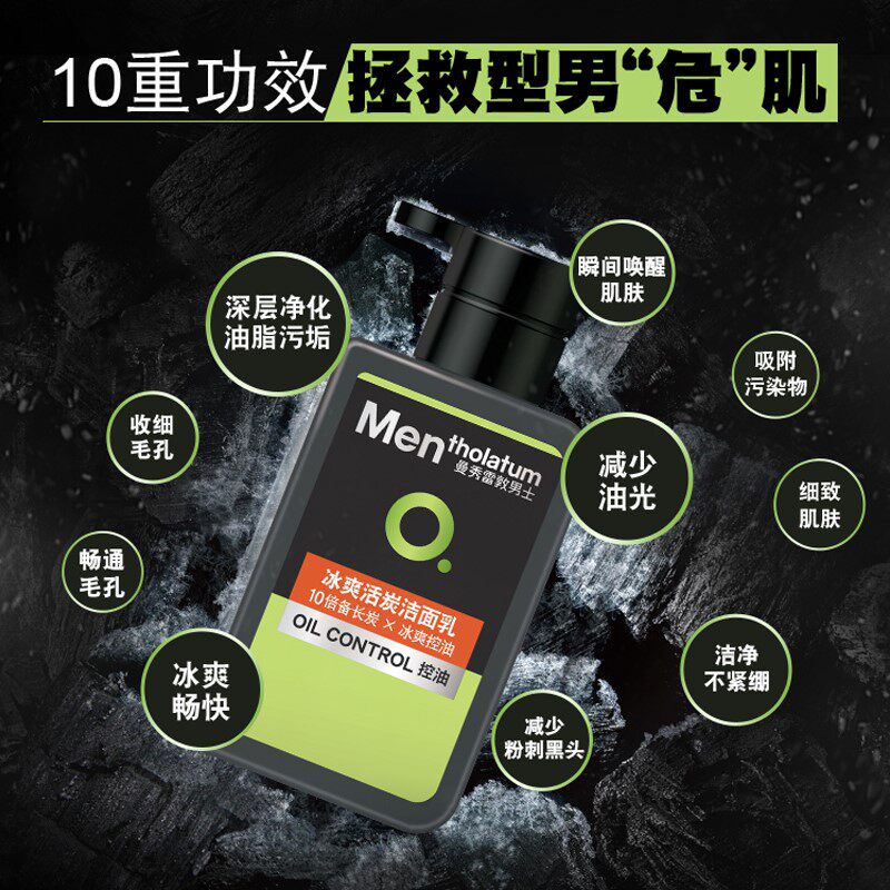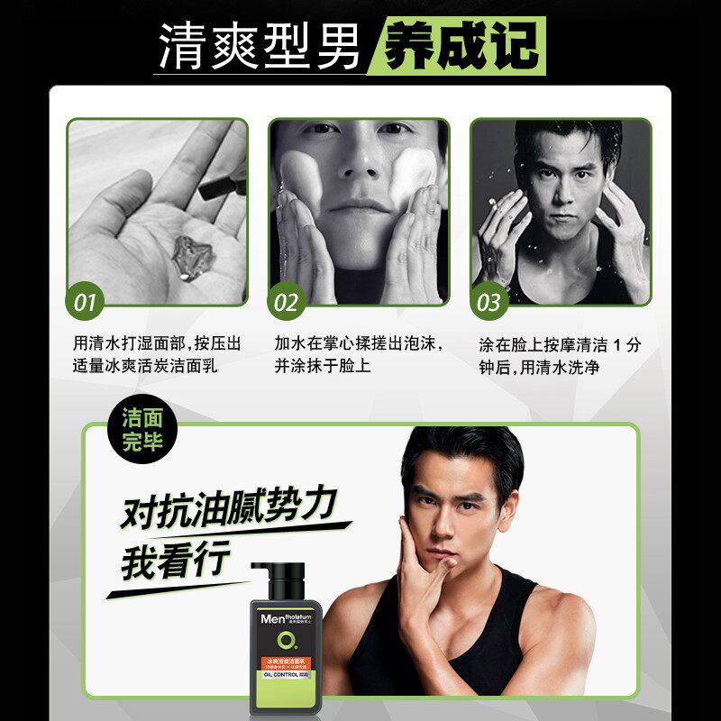 Mentholatum Men's Oil Repellent Facial Cleanser Ice Cooling Live Charcoal Facial Cleanser Control Oil Acne Mite Set