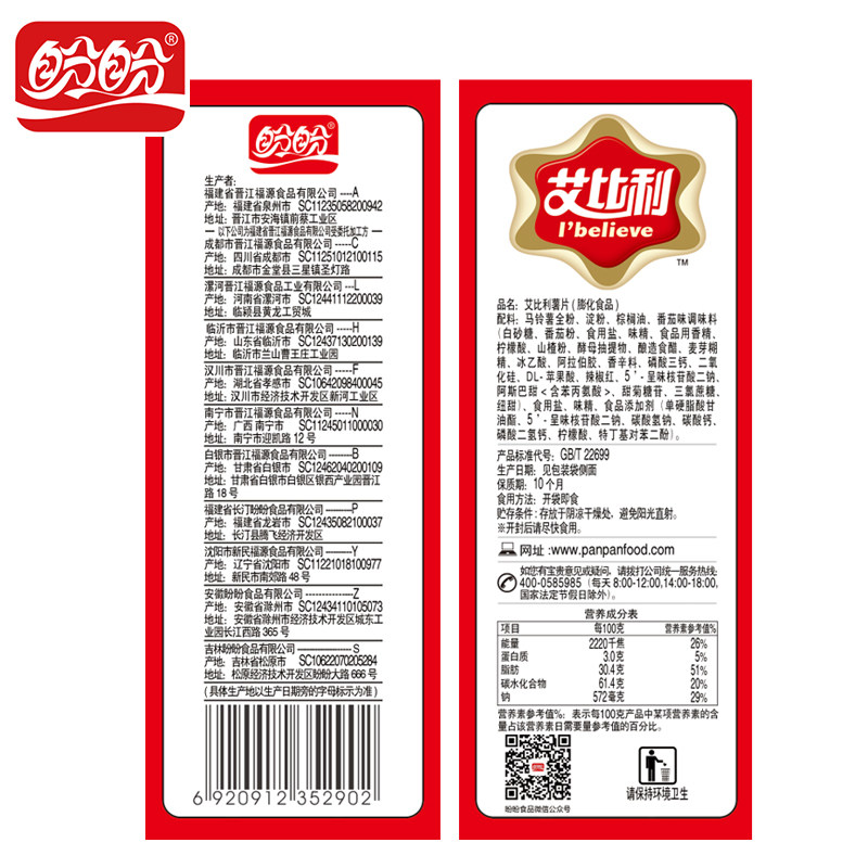 Panpan Abby Potato Chips Original Barbecue Spicy Tomato Casual Puffed Snack FCL 5kg Wholesale