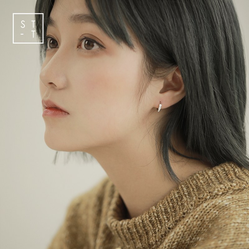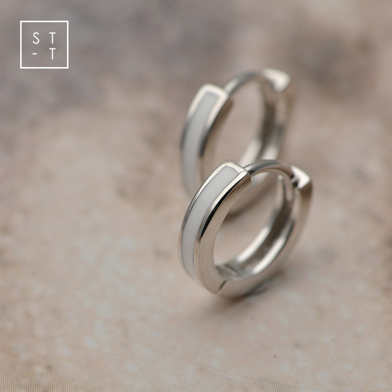 t Shen too S925 pure silver ear decoration Japan-ROK brief about 100 hitch a little fresh and white baking lacquered earrings with elegant little earrings