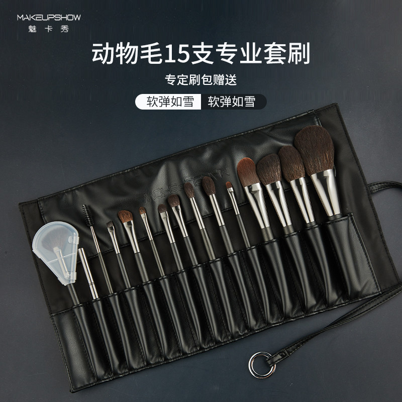 Canton Makeup Brush Sets Makeup Artist Special Phantom card Show wool 15 full set of animal hair real hair portable cover brush