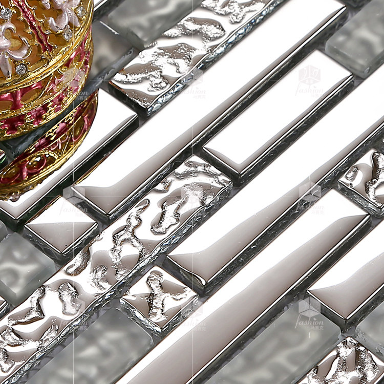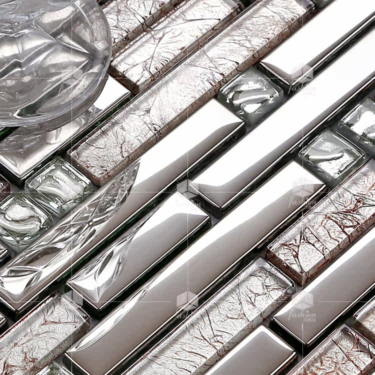 Crystal Clear Mosaic 122 Strip Plated Glass Mirror Eurostyle TV Background Wall Sticker Living-room Genguan Tile