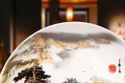 Jingdezhen ceramic pastel traditional Chinese painting landscape sitting plate flower plate hanging plate modern home decoration decoration decoration