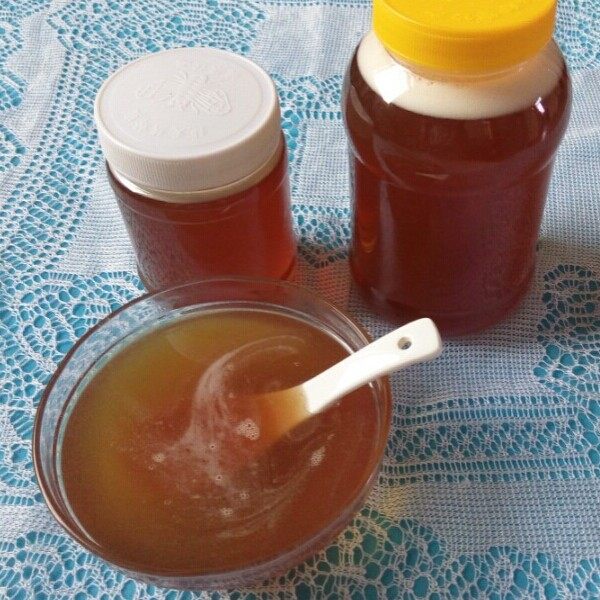 The liquid honey.