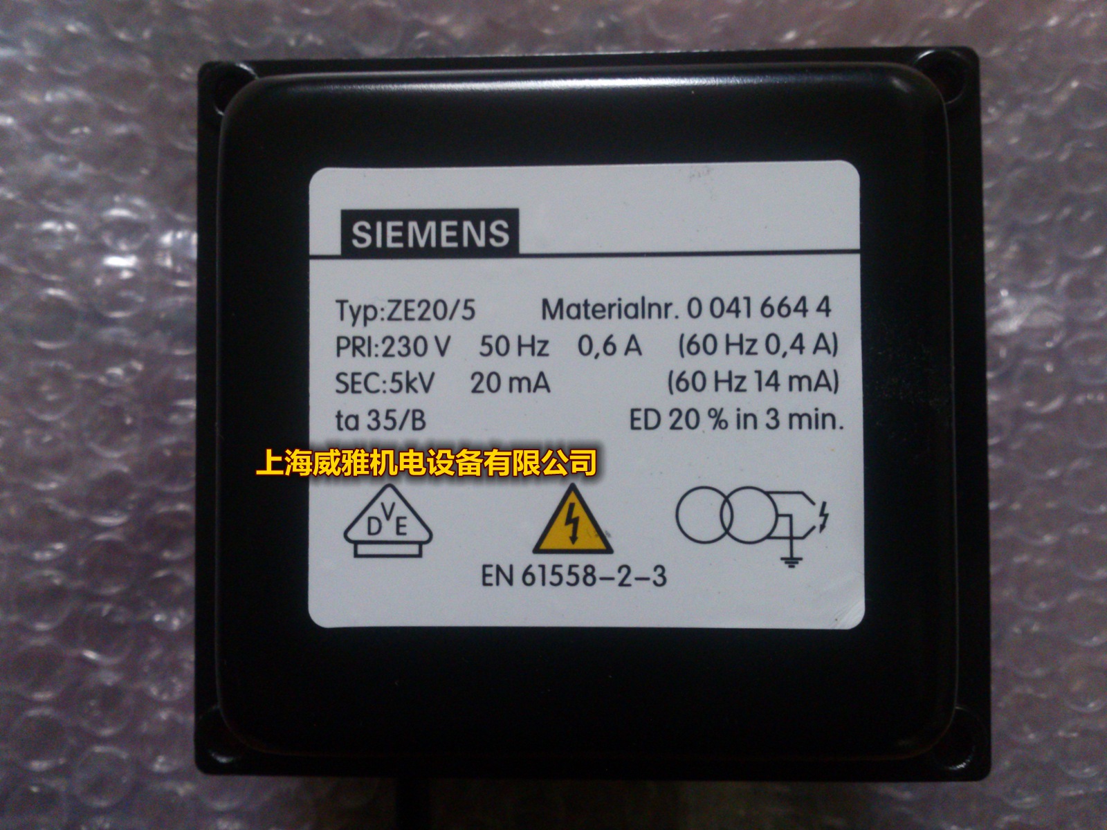 Typ:ZE20 5 SIEMENS Siemens) burner accessories) ignition transformer) high voltage package) 1*5KV