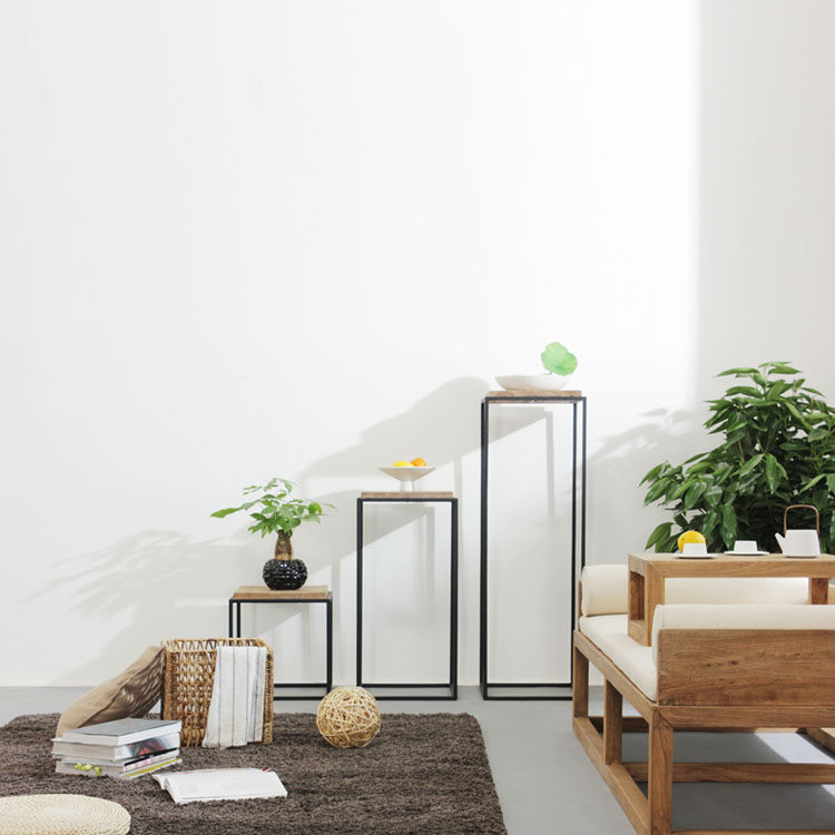 Simple modern wrought iron storage rack floor solid wood flower rack bonsai rack multi-layer balcony storage green dill plant rack set