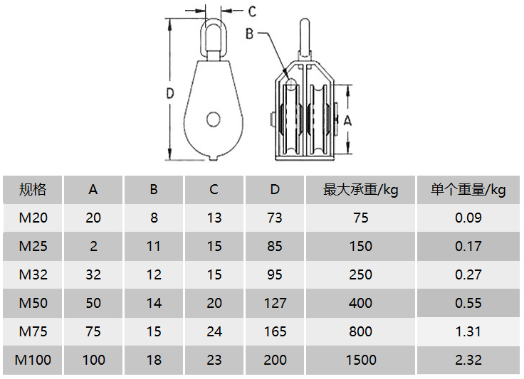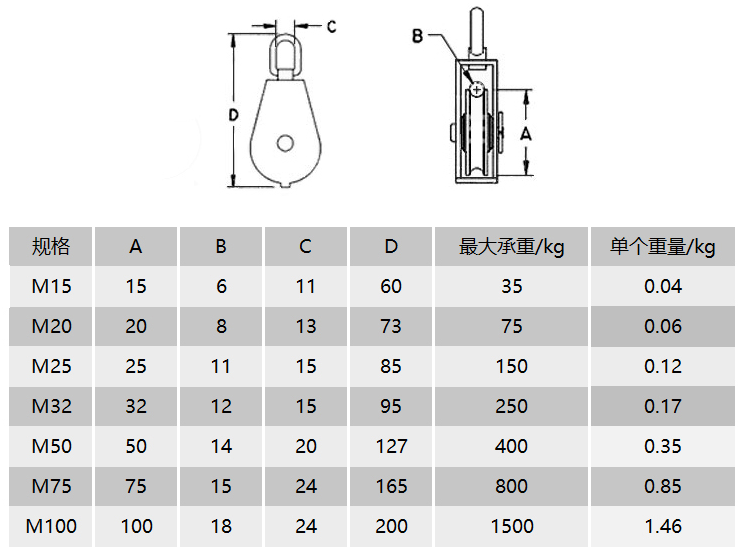 Single pulley M15 single pulley M20 single pulley M25 single pulley M32 single pulley M50 single pulley M75 single pulley M100 double pulley M15 double pulley M20 double pulley M2 double pulley M2