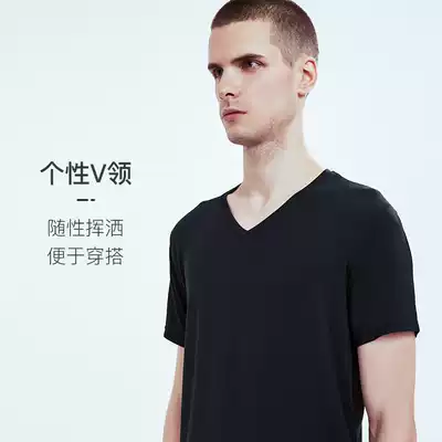 Pilkaden Lenzing Modal T-shirt Men's regular V-neck undershirt Half-sleeved bottoming shirt Black short-sleeved underwear