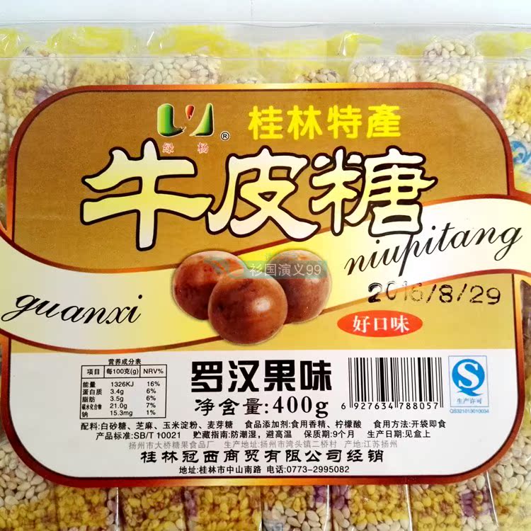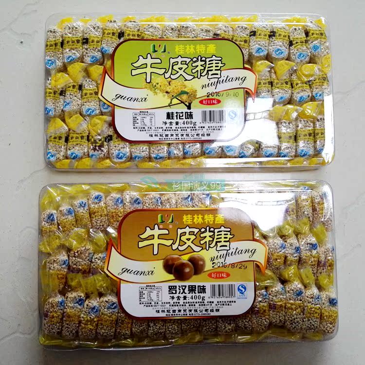 Guilin specialty soft candy snacks Guanxi cowskin candy 400g sweet osmanthus taro cowskin candy Luo Han Guo sesame cowskin candy