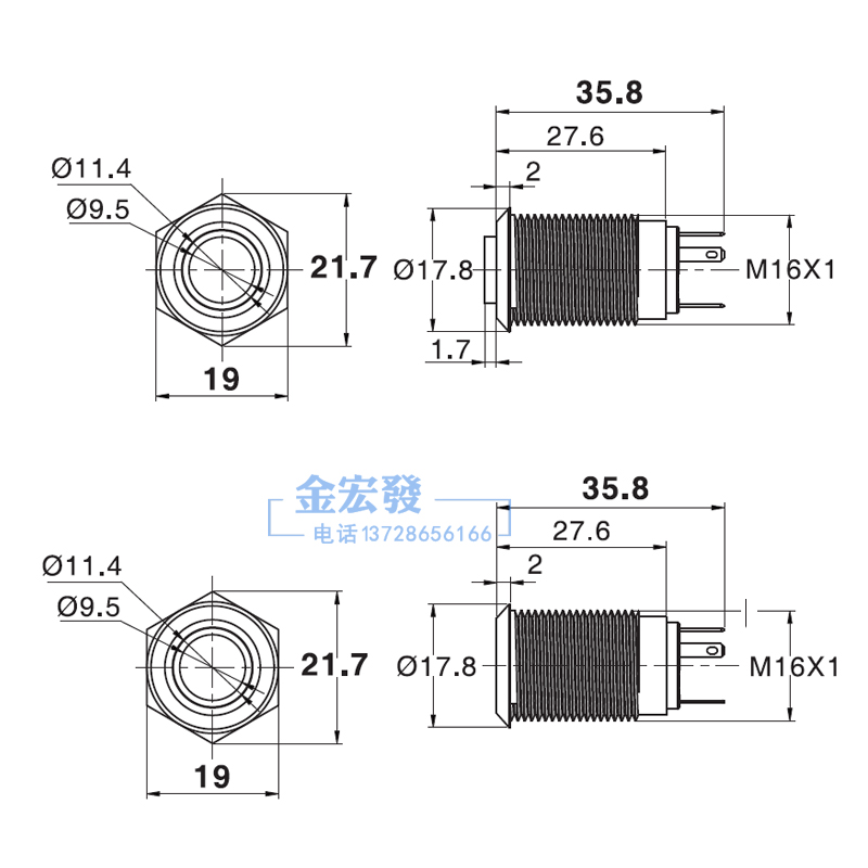16MM Jinhong metal button switch high head plane with light self-replicating super long thread 20MM J16-271