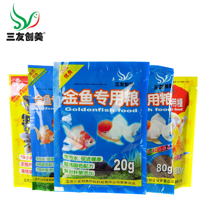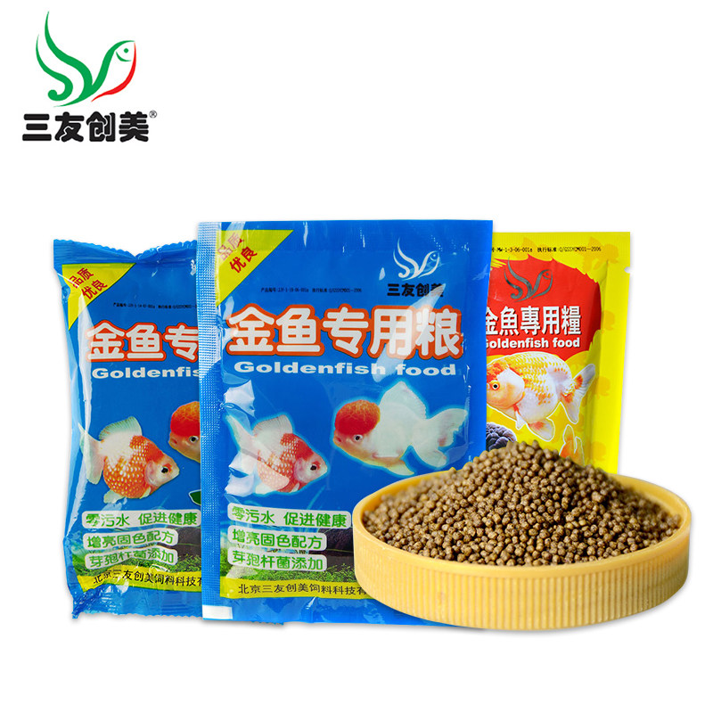 Sanyou Chuangmei small golden fish Koi fish food Lan Shou color Spirulina Thai Lion floating small particles fish food