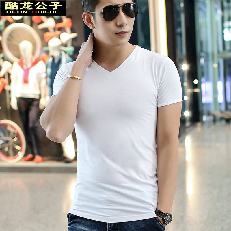 Pure white short-sleeved t-shirt Men's half-sleeved pure cotton solid color bottoming shirt Fitness slim-fitting t-shirt tight clothes long-sleeved t-shirt