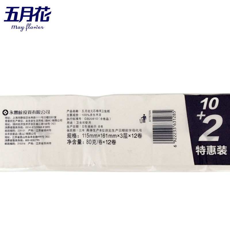 Mayflower A11610B coreless 3-layer toilet paper roll 10 2 rolls 960g 12 rolls 3-layer single delivery price