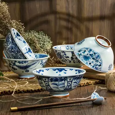 Lan Rintang Bowl Japanese household ceramic rice bowl with instant noodle bowl Pottery Fun Home Guangfeng Japanese imported tableware high foot Rice Bowl