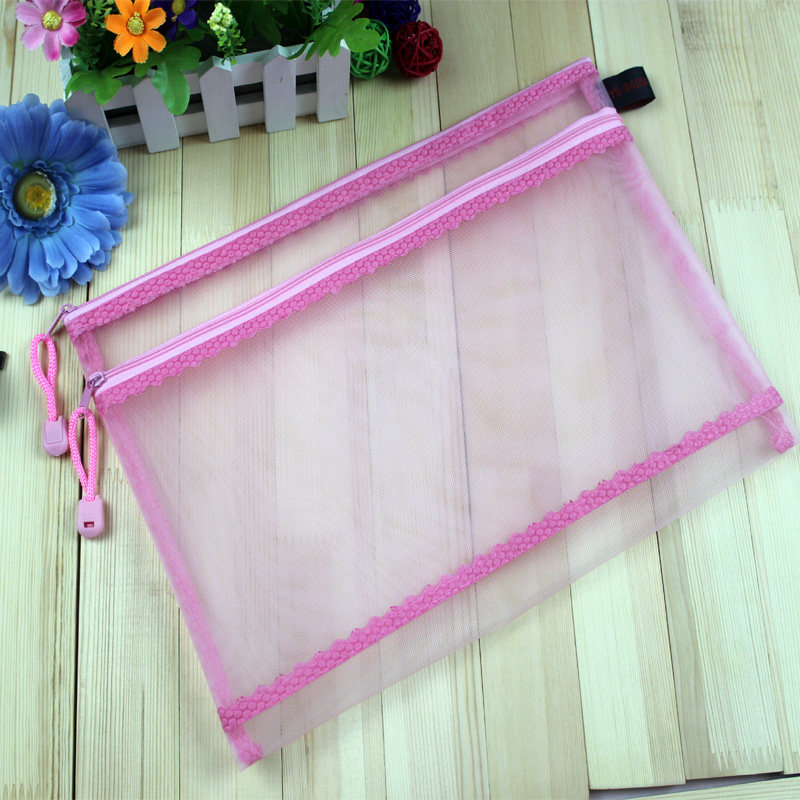 Ring Beauty A4 Breathable Silk Screen File Bag Double Mesh Bag cashier Bag Exam Bag transparent Racelet bag
