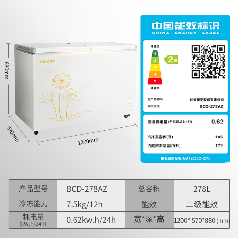 MeiLing BCD-278AZ freezer double temperature horizontal household commercial large capacity freezer