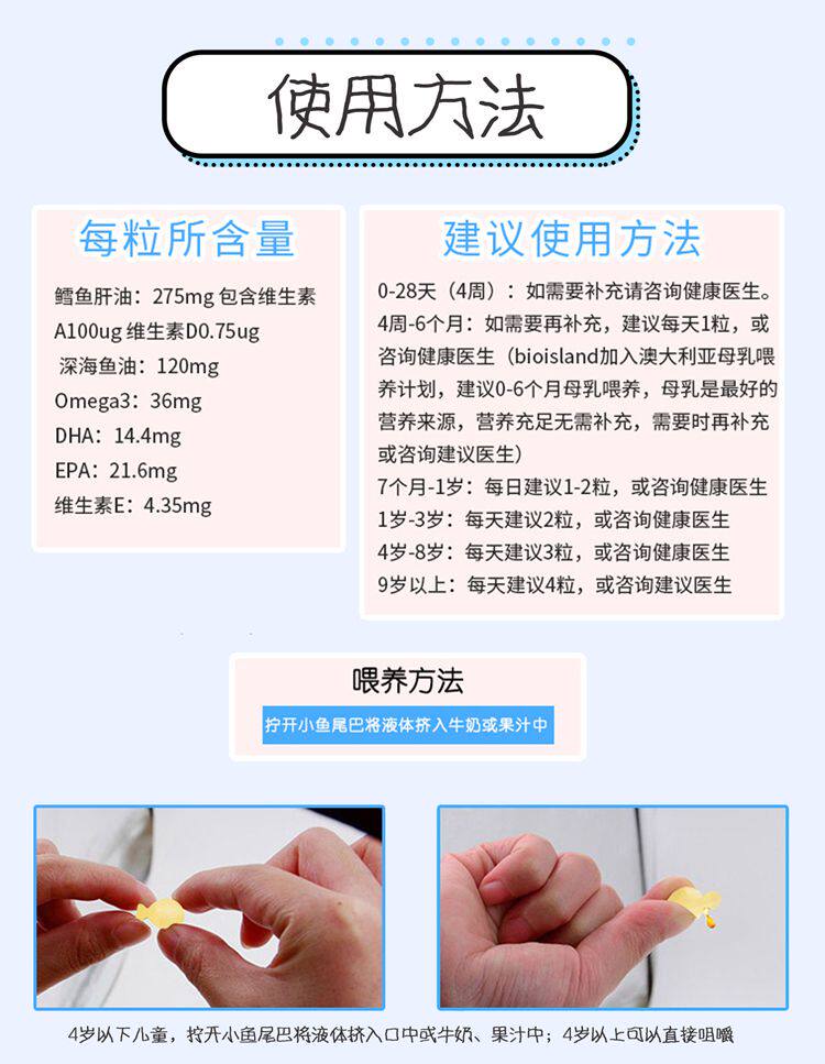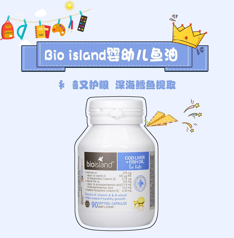 Australia BIO ISLAND baby cod liver oil fish oil contains DHA VA VD 90 tablets
