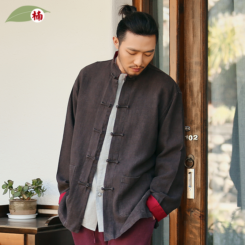 NNan Linen Tang Dress Men's Clothing Spring Hemp Long Sleeves Jacket Chinese Style Blouse China Wind Retro Disc Buckle Improved passenger