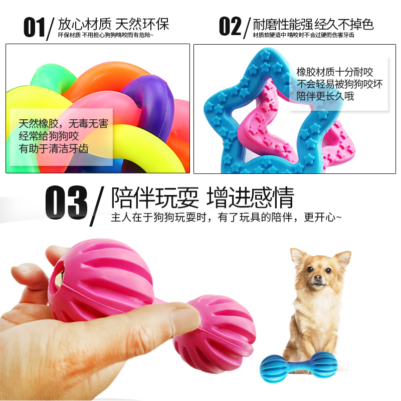 Colorful rubber bells ball medium cotton rope double-section bite-resistant ball combination 6cm * 3 bite-resistant ball combination 7cm * 3 hand-drawn sling belt cotton rope ball Double Knot belt tennis TPR