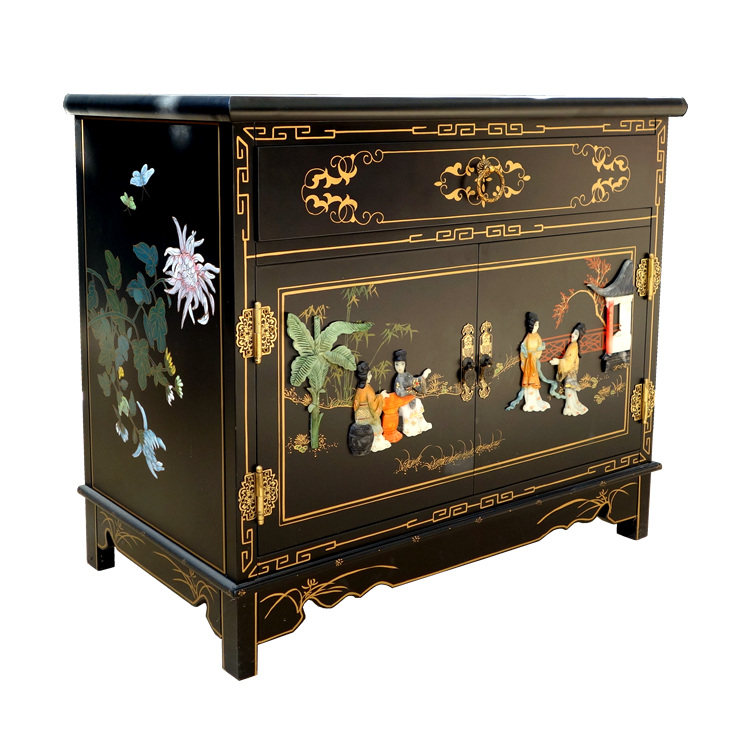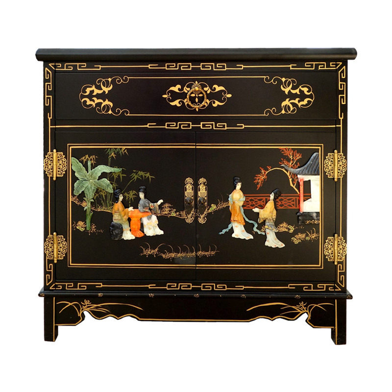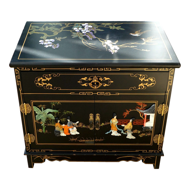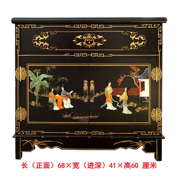 Lacquer Bone Stone Inlay Character Double Door One Pumping Bed Head Cabinet Yangzhou Lacquer Art Studio Solid Wood New Vintage Furniture