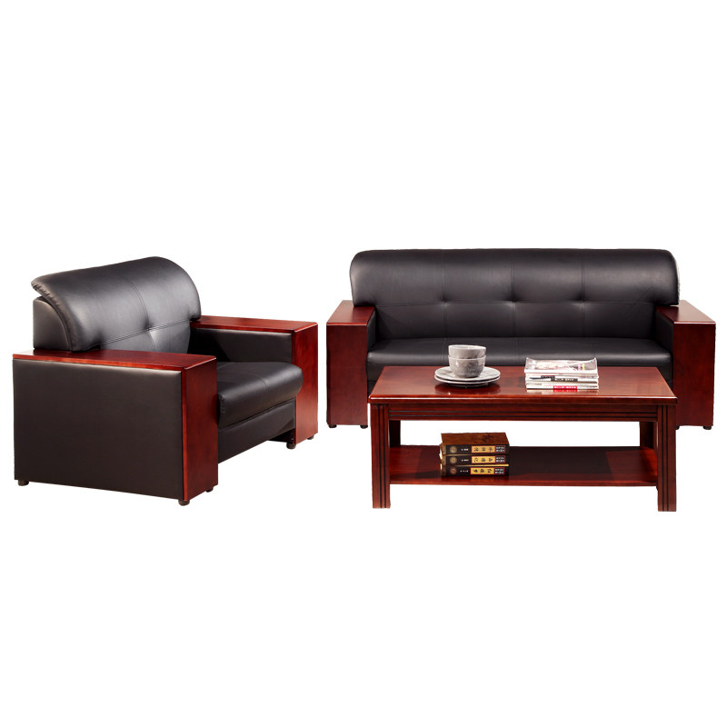 Office furniture simple modern office sofa tea table combination business reception area reception leather three-person 201