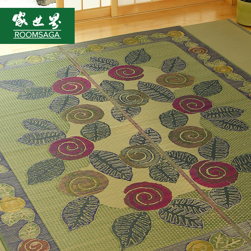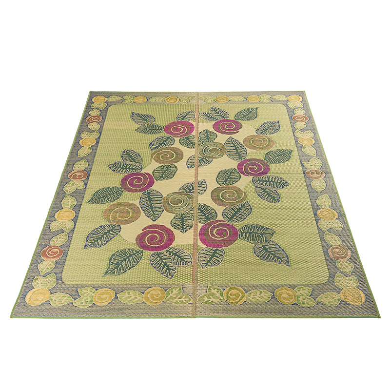 Japanese rush woven carpet Floor mat Bedroom living room Bed edge carpet mat Foldable non-slip coffee table mat Rose Garden