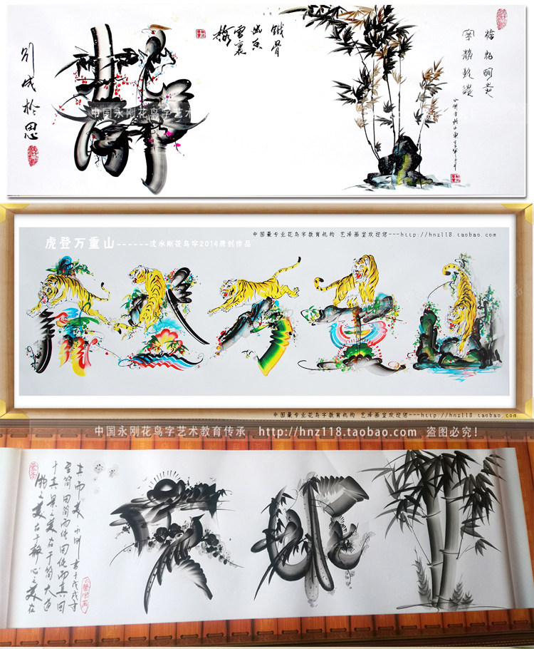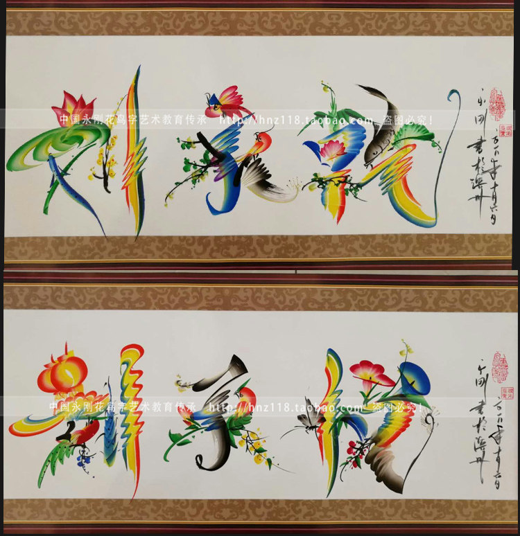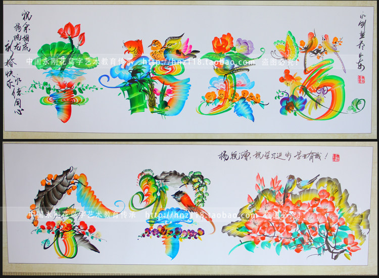 Yonggang Flower Bird Word Painting Dragon Feng Word Learning Tutorial Teaching Materials Training Name Character Painting Folk Handmade Art