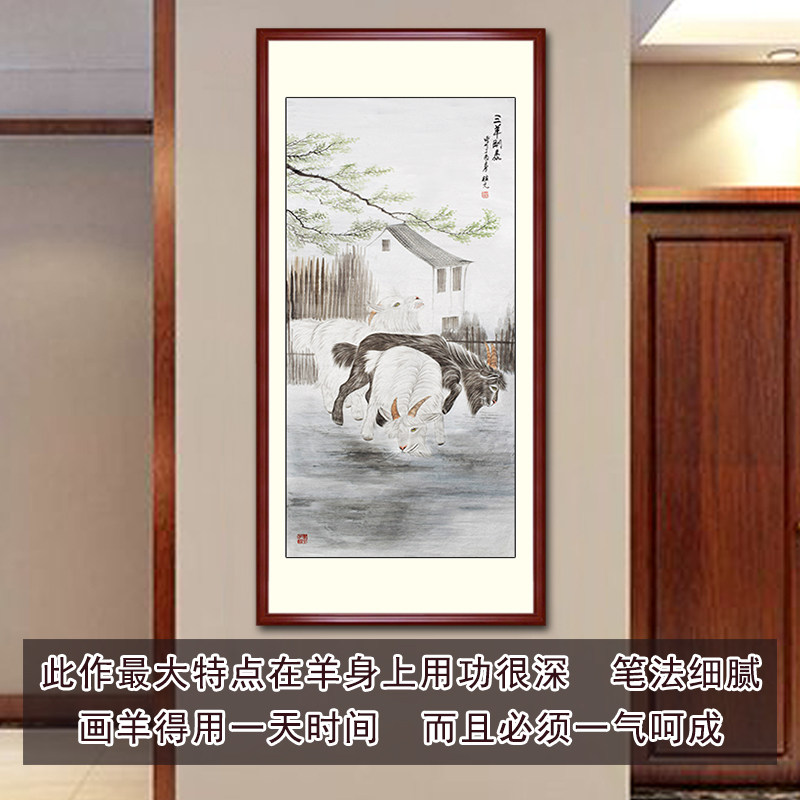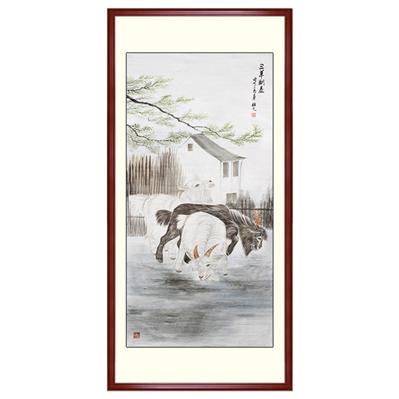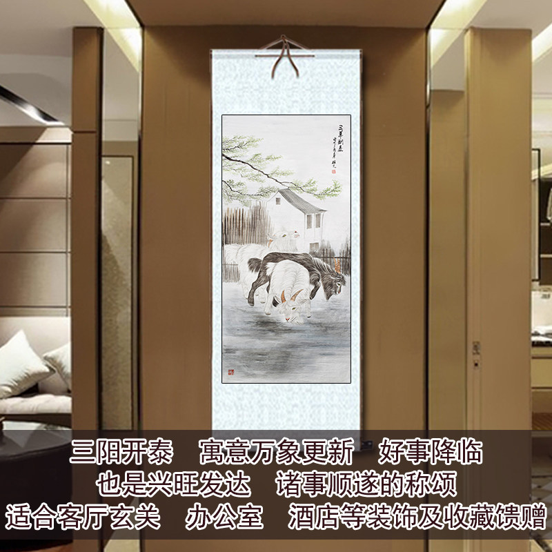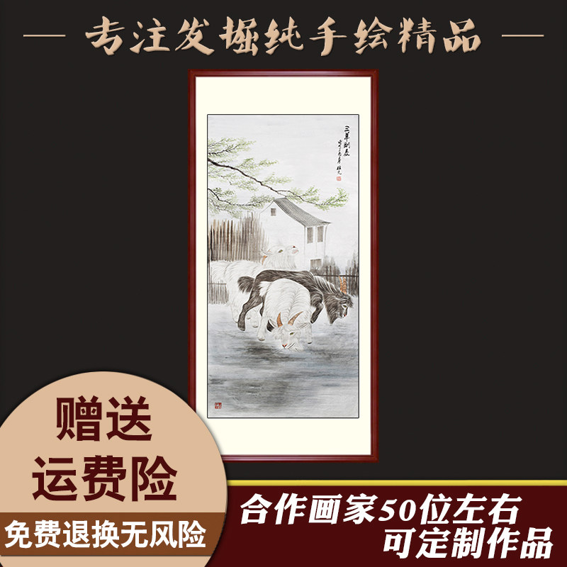 National painting Three sheep Kaitai Vertical version Xuanguan Corridor pure hand-painted decorative painting core scroll hanging painting can be brought with frame Sanyang Kaitai