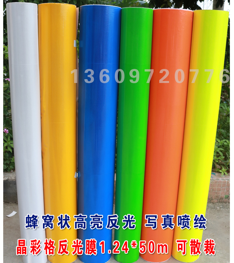 Guangzhou Dorsal Gel Crystal Color Greflective Film Outdoor Writing True Spray Painted Honeycomb logo card Construction appliqued red yellowish blue-green white