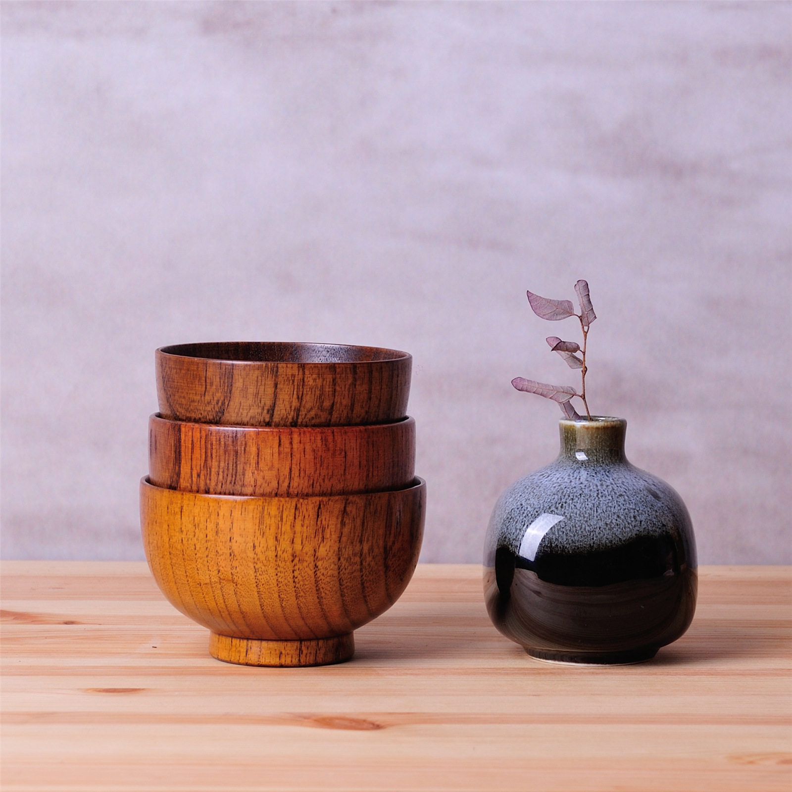 Ruoxu life creative Japanese household wooden tableware baby children baby eating small wooden bowl round bowl side dish bowl
