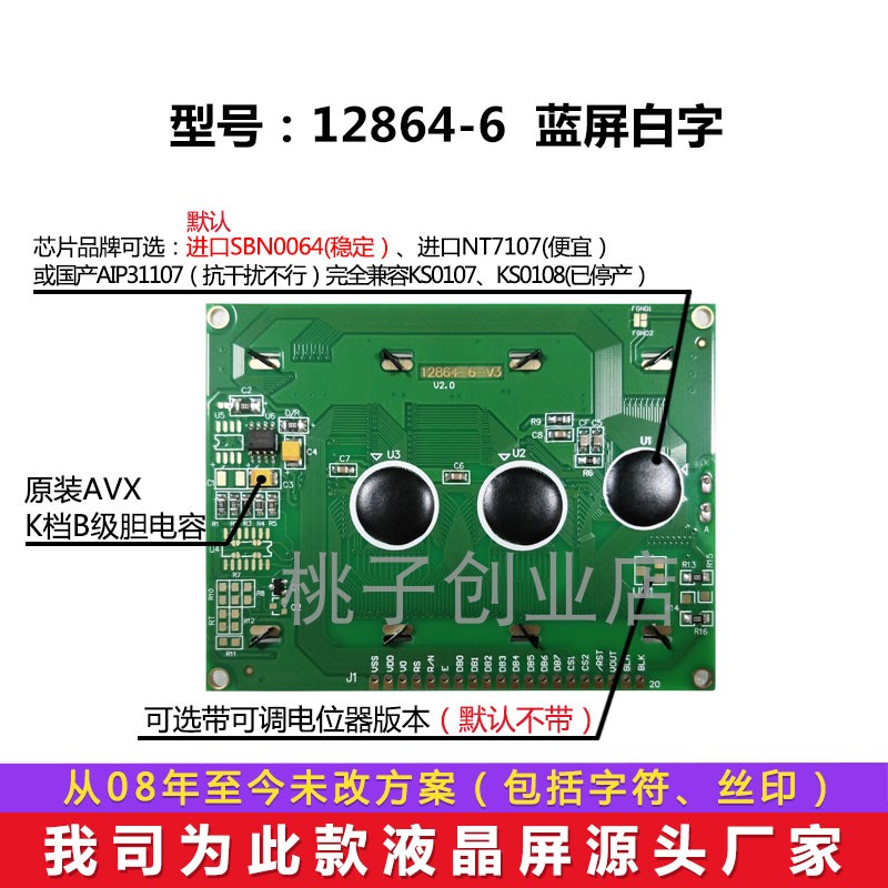DS12864-6 KS0108 without font library factory direct sale small frame 12864 graphics dot matrix 93X70