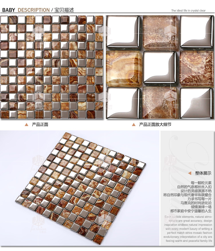 Crystal Mosaic Golden Mosaic Printing Crystal Glass Mirror Puzzle Background Wall Toilet tiles